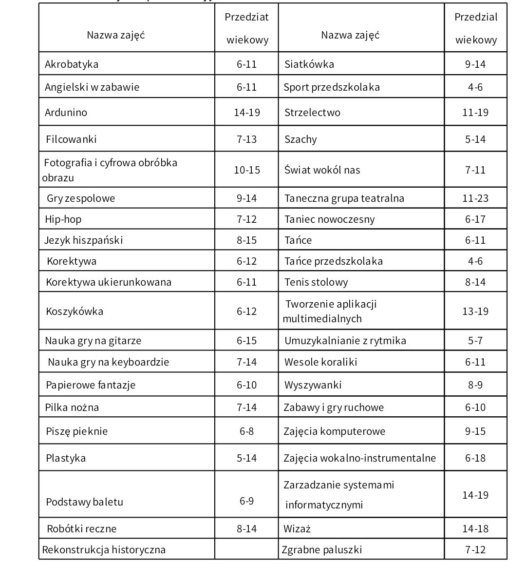 Informacje o zapisach na zajęcia – w zakładce REKRUTACJA